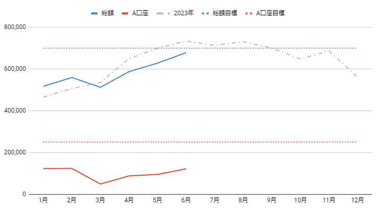 2024年6月度 予算と貯金残高 (貯金開始64ヶ月目)