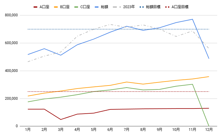 1月分のクレカ引き落としが終わって口座リセットしたらA口座にお引っ越し予定です