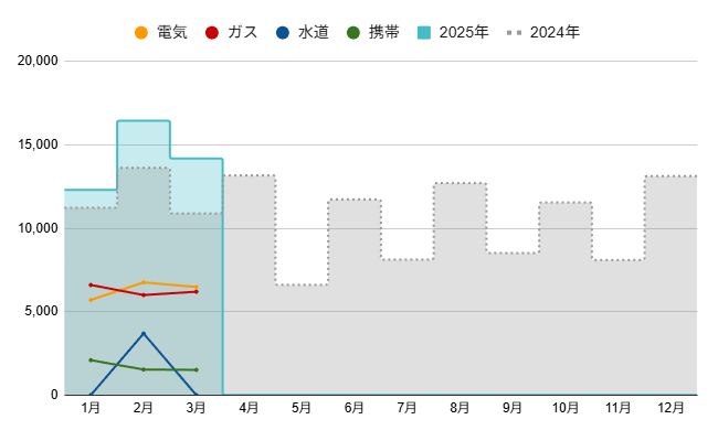 costMoney 光熱費 2025年3月度 光熱費 cost 2025年05月18日(日) 21時00分 電気 6,481円 (先月 6,754円) ガス 6,196円 (先月 5,996円) 水道 0円 今月は無し 携帯 1,510円 (先月 1,532円) 合計 12,301円 (前年同月比 11,592円) 電気代下がったと思ったらガス代が上がるんかい!! 去年に比べて全体的に上がってるのは 補助金とかの関係なのか🤔