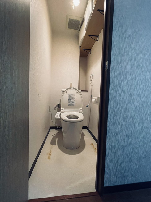 写真じゃ分かりにくいかもだけどトイレ自体の色は「ブルーグレー」です