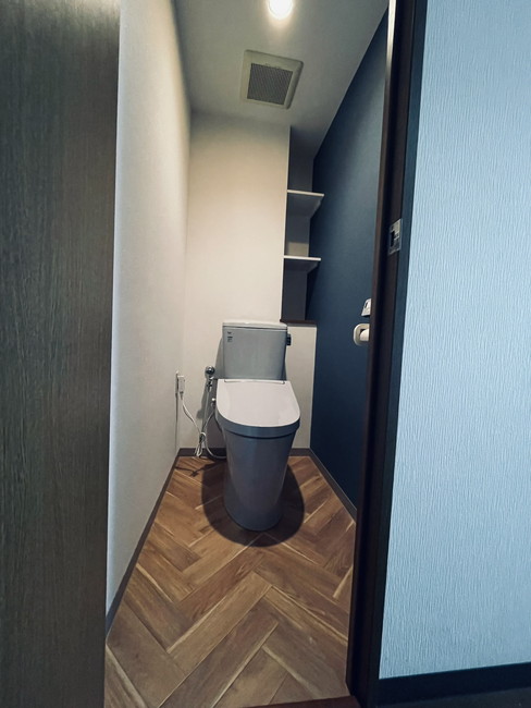リビングと同じネイビーにしたのでトイレの色もブルーグレーに合わせました
