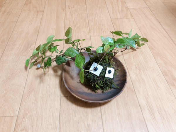 植物を入れ替えて、苔も新しい物をくっつけて、糸をグルグル