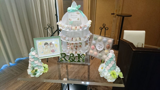 真ん中のタワーとマカロンタワーはNちゃんの手作り