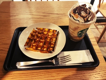 スターバックスより クラシックティラミスフラペチーノとアメリカンワッフル