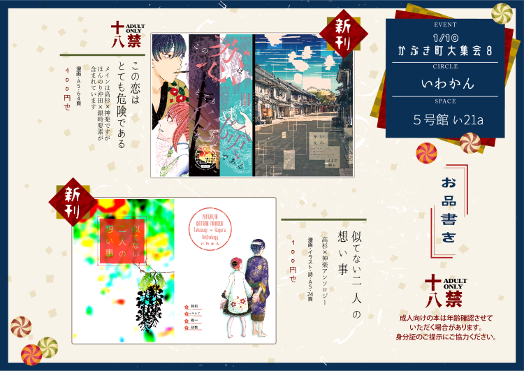 コンバンビ!!将和です(*´ω`)ノ2冊目の製本作業が終わったので無事新刊2冊出ます!! →1冊目この恋はとても危険であるイヤー…長かった…半年以上続いた長く辛い戦いでした…2021年1月10日かぶき町大集会 8 にて配布予定です後日Boo...
