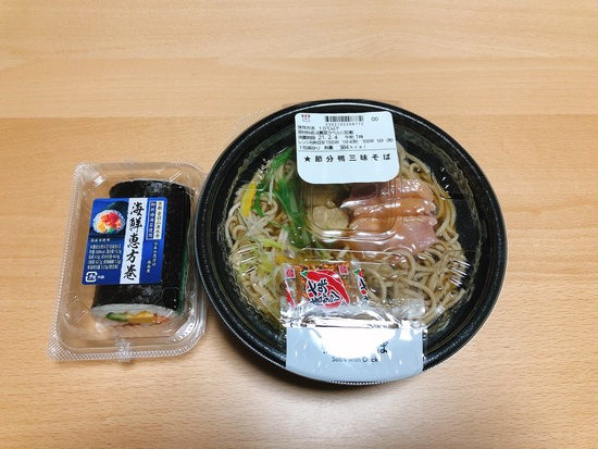 毎年ローソンで海鮮恵方巻と鴨蕎麦を購入しているのですが