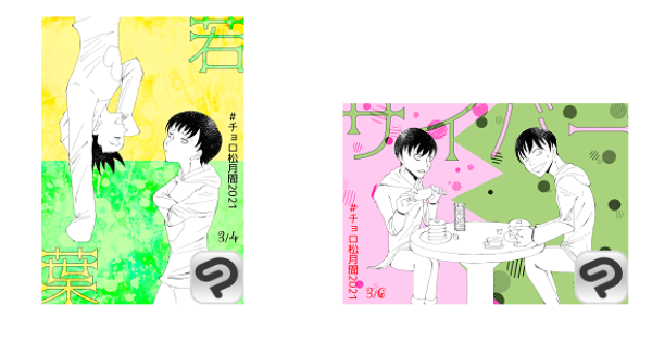 Now 進捗 チョロ松月間の加筆忘れてた… Now 2021年05月16日(日) 21時59分 あともう2枚で行ってきたレポ終わるんだけど それよりチョロ松月間の若葉とサイバーの 色塗りしてないのに今気付きました… すっかり忘れてた…レポ終わったらやります😭😭